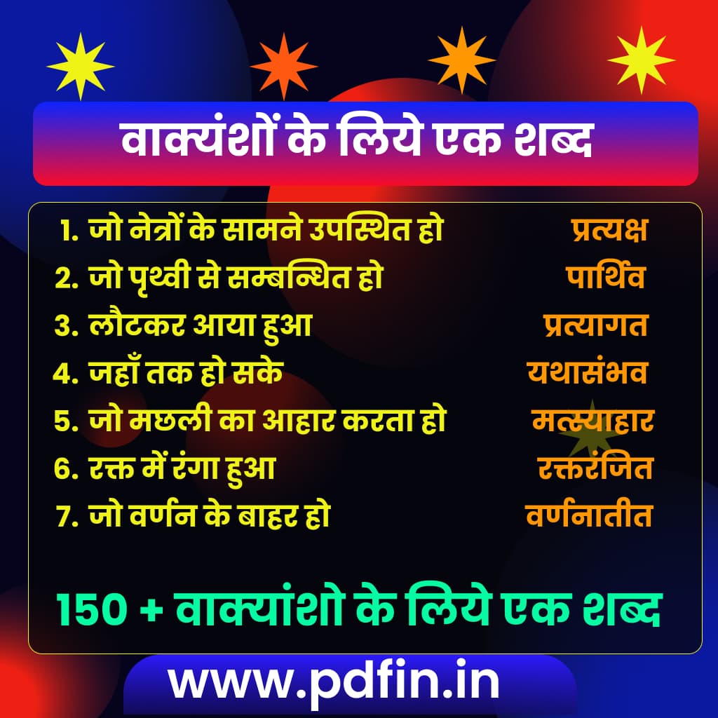 Anek Shabdo Ke Liye Ek Shabd हिन्दी में